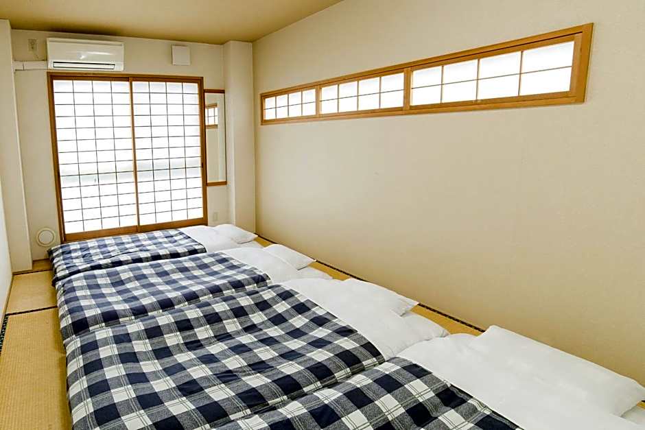 This quadruple room features tatami (woven straw) flooring and futon bedding. Showers are shared.